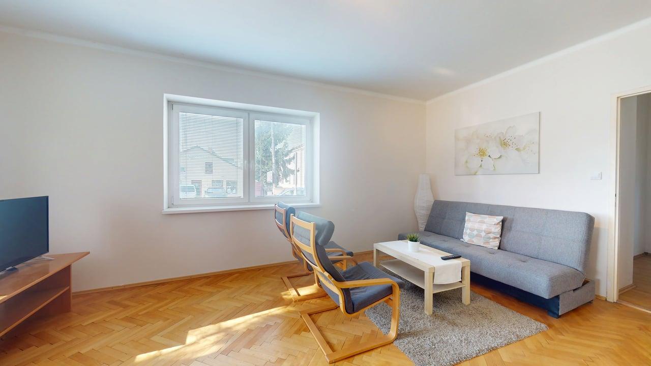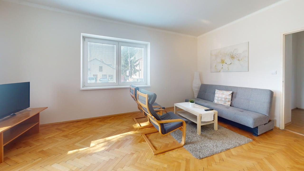 Každý byt ponúka komfortnú dispozíciu: 3 samostatné izby kuchyňu kúpeľňu samostatné WC Vďaka tomuto riešeniu poskytuje dom dostatok súkromia pre dve rodiny alebo ideálnu kombináciu bývania a prenájmu.