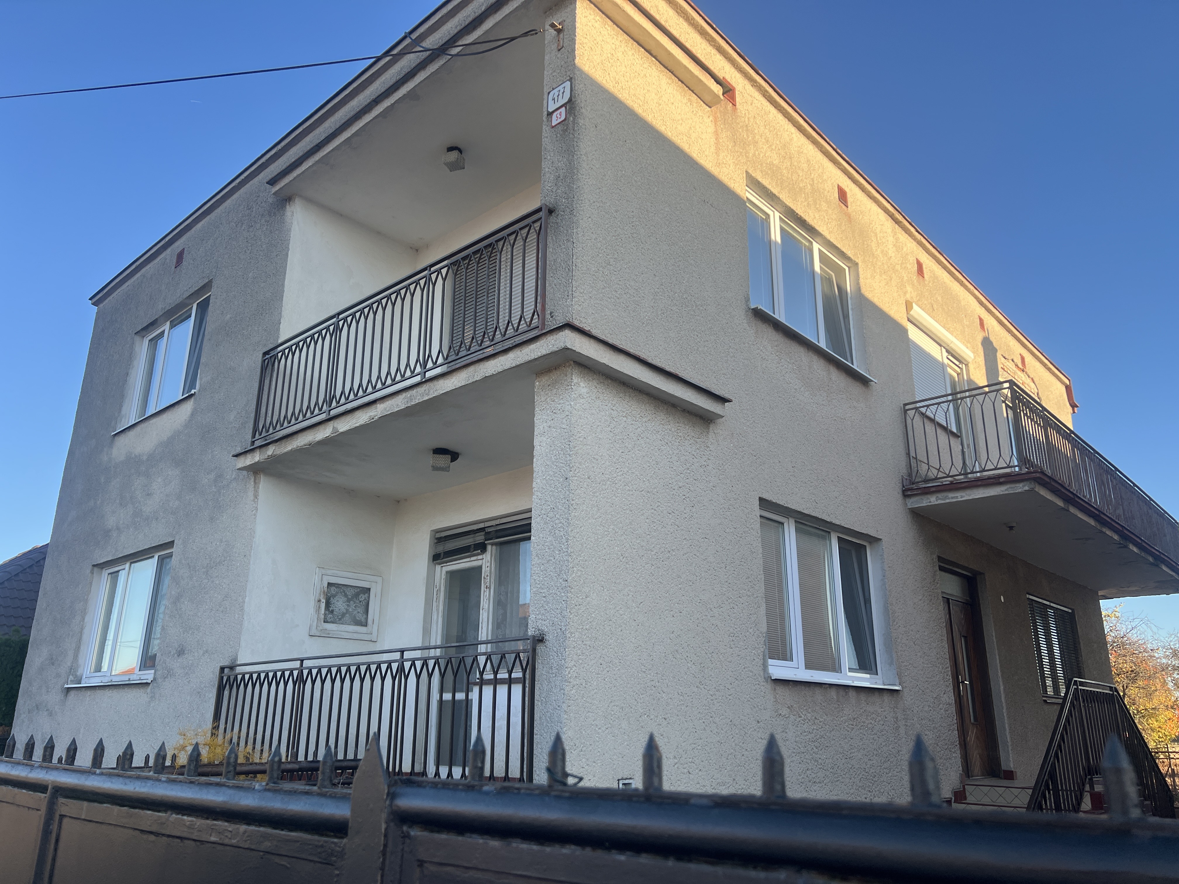 Na prvom poschodí sa nachádzajú dve izby, kuchyňa s kúpeľňou, samostatné WC a špajza. Na druhom poschodí sú tri izby s výstupom na priestrannú terasu, ktorá ponúka priestor na oddych a relax. V dome sú čiastočne vymenené plastové okná a zachovalé parkety, ktoré sú v dobrom funkčnom stave.